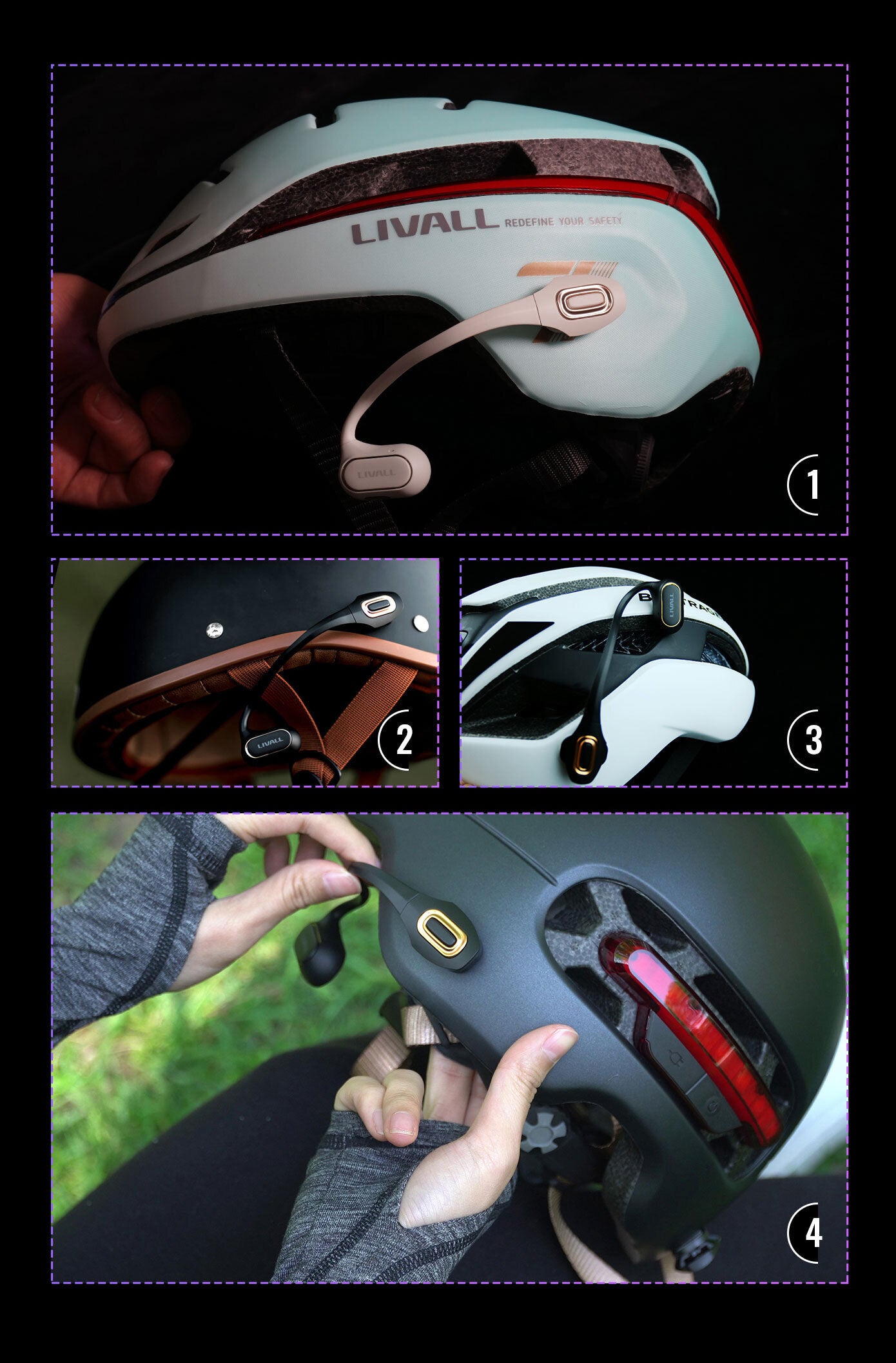 LIVALLリモコンはLIVALLスマートヘルメットとLIVALLオープンイヤーヘッドホンの両方をハンドルバーから操作できるので、安全性とサウンドを自分流にコントロールすることができます。 取り外してヘルメットに取り付け可能