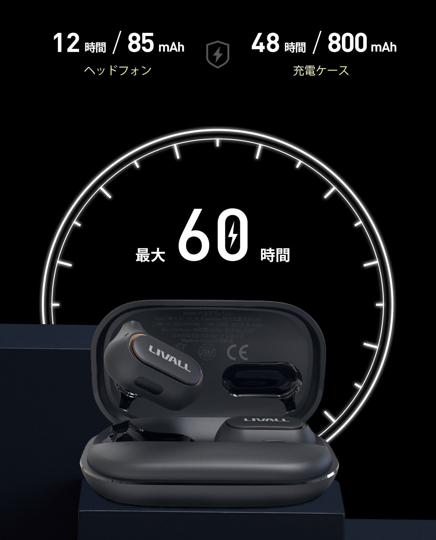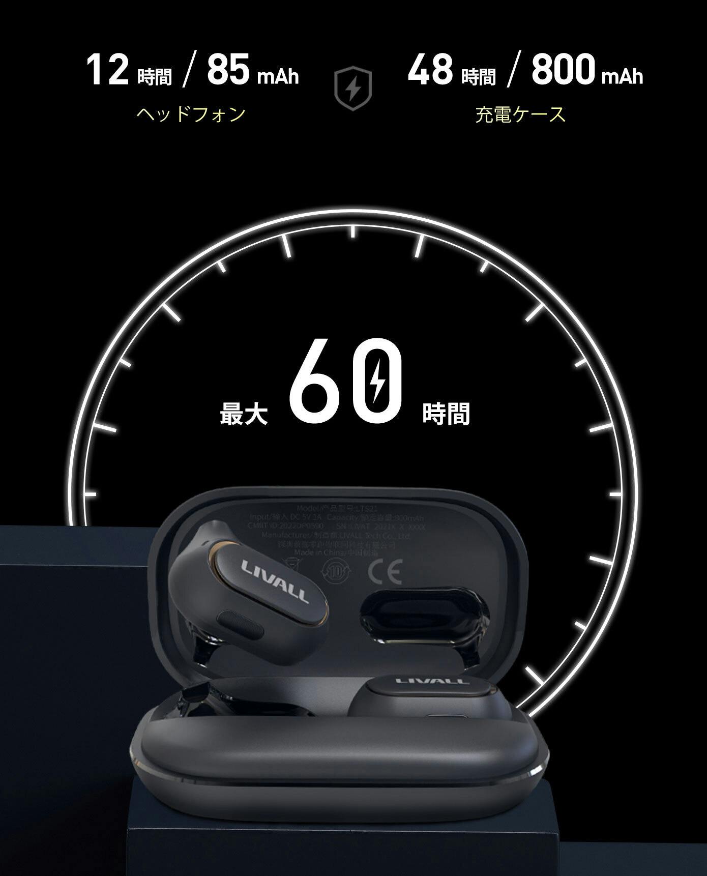 LTS21のスマートな省電力設計は、最大12時間の連続再生をサポートし、フル充電で最大60時間再生できる800mAhの充電ケース/パワーバンクを備えています。