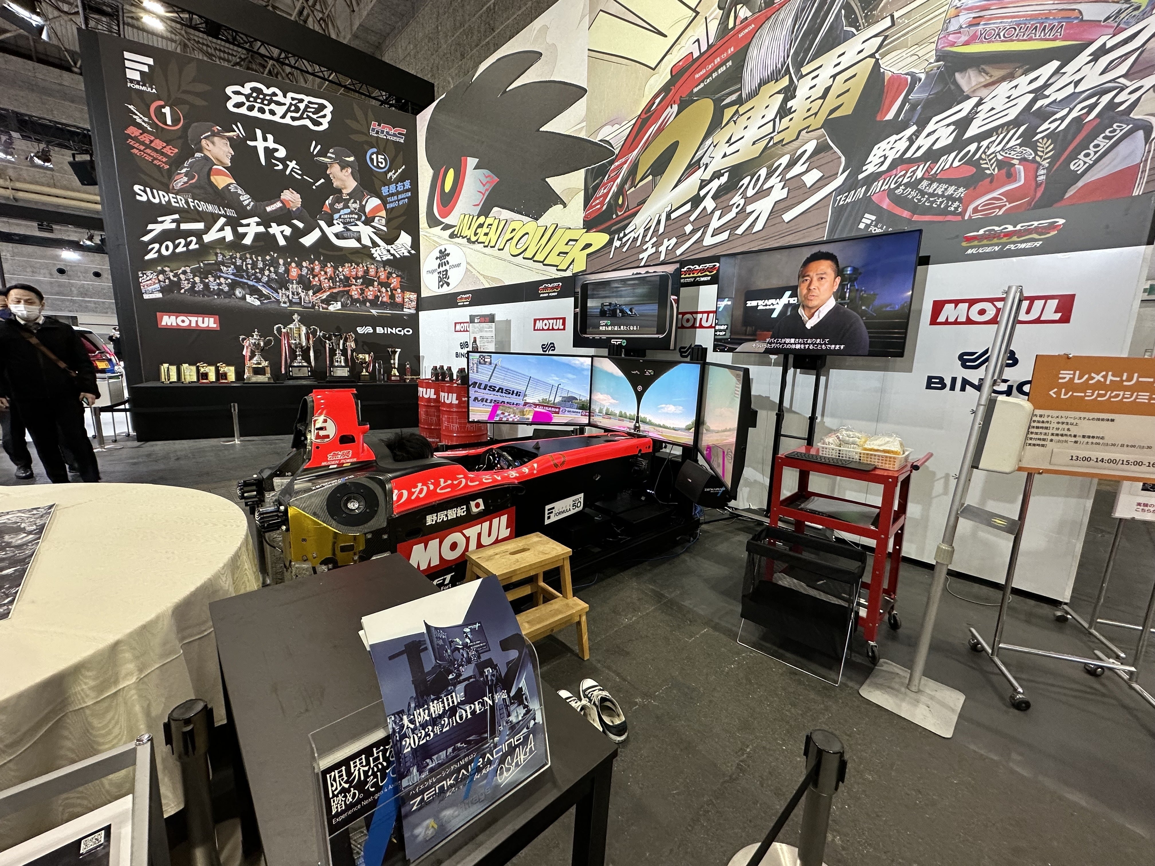 2023/02/16 23:53クラウドファンディング、【67%】まで来ました!皆様ご支援、本当にありがとうございます!!先週、ZENKAIRACING OSAKAの開店準備を進める傍ら、2月10-12日に開催された大阪オートメッセに行って参りました。今回はHonda/無限様にご協力いただき、なんと本物のスーパーフォーミュラSF19の横に、ZENKAIRACING社製SF14モノコックシミュレーターを設置させていただきました。SF19(下段)と一緒に搬入されるモノコックシミュレーター(上段)今年の大阪オートメッセは3日間で20万5462人が来場。昨年の3倍近くの規模とのことで大盛況!Honda/無限ブースでのシミュレーター体験も整理券はすぐに売り切れ!3日間で100名以上の方に本物のモノコックを使用したシミュレーターを体験いただきました。当日は無限さんのテレメトリーシステムで取得した野尻選手のリアルでの鈴鹿走行データをAssettoCorsaに取り込んで、シミュレーター上で一緒に走ることができる取り組みも行っていました。野尻さんのタイムが35秒付近でしたが、かなり近いタイムまで迫る参加者様もいらっしゃいました(スゴイ・・・)大阪に設置予定のモノコックのデザインもできてきました!!店舗内外装も最後の追い込み作業中です!現在飲食店営業許可の申請中のため、スケジュールがまだ未定なのですが、うまく事が運べば2月27日(月)からプレオープンしたいと思っております!また追って確定しましたらお知らせさせていただきます!お楽しみにお待ちくださいませ!! もっと見る