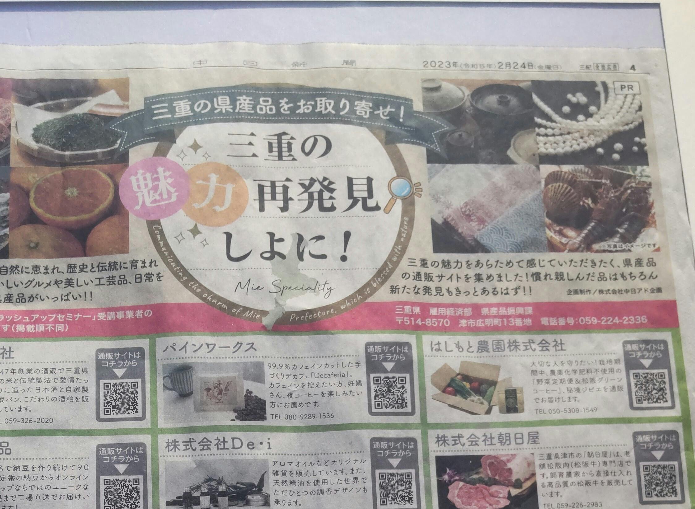 中日新聞にて令和4年度「ECサイトブラッシュアップセミナー」受講事業者の通販サイトを紹介していただきました。