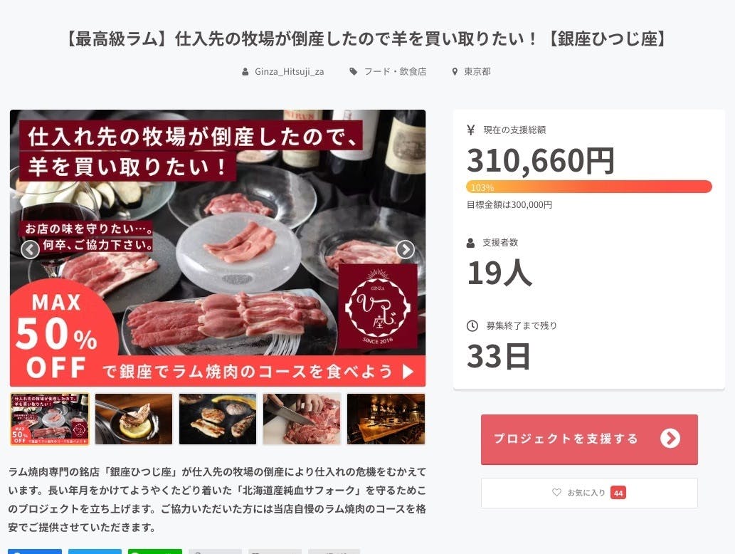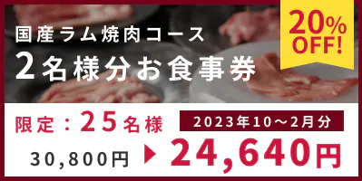このプロジェクトにご協力いただけた方には、当店自慢のラム焼肉のコース(通常価格15,400円)をご提供させていただきます。
