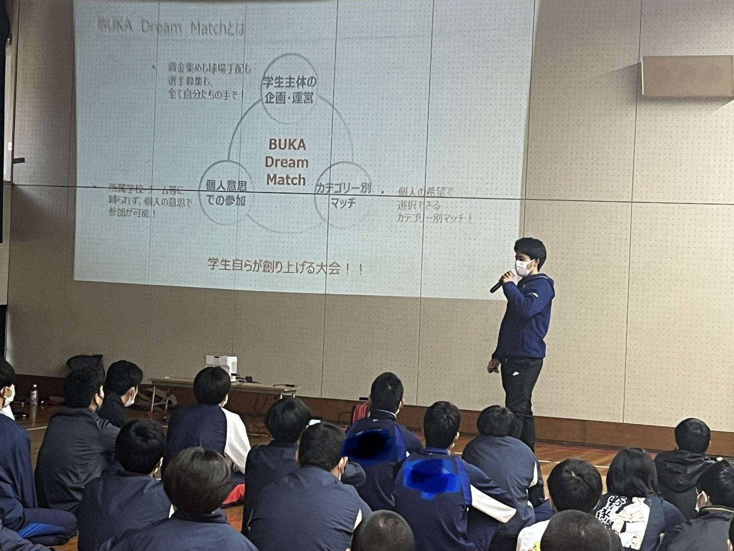 現在、16日までに70%という目標掲げてあと8%というところまでやってきました。そんな中、本日14日にBDM実行委員長の河村が初めてのプレゼンを行って参りました!!ここで河村からプレゼンを終えて活動報告していただきます!!「こんにちは!実行委員長の河村です!本日、50名程度の野球に関わる中・高校生が集まるイベントがあり、そこでBDMについてのプレゼンを行いました!これが僕にとって初めてのプレゼンであり、前日の夜は不安に駆られ、緊張からなかなか眠れなかったです、そして当日を迎えプレゼン本番の30分前には意識が飛びそうなぐらい緊張してました!ですが、いざプレゼンを始めてみると、緊張はだんだんと和らいでいき、後半ではしっかりと自分の思いを伝えることができました!今回、初めてのプレゼンを通してみんながどういった事に共感、興味、反応をしてくれるのかが自分の中で知ることができました!また、思いをより伝える為の言葉の選択であったり、説明の仕方、あまり反応がなかった部分など次のプレゼンに向けての改善点も発見することができました!この経験を次のプレゼン時にしっかりと活かして自分の思いをより伝えれるように頑張ります!」これからもプレゼンを積み重ねて、BDM実現に向けてしっかりと着実に進んでいこうと思います!皆様のご支援のお力があり、ここまで計画の方も進んでおります。少しずつではありますがBDMの実現が近づいています!ご支援していただいている皆様に本当に心から感謝申し上げます。BDM実行委員一同、しっかりと気を引き締めてすすんでまいります!Instagram→@buka_dream_matchTwitter→@BUKA_DreamMatch