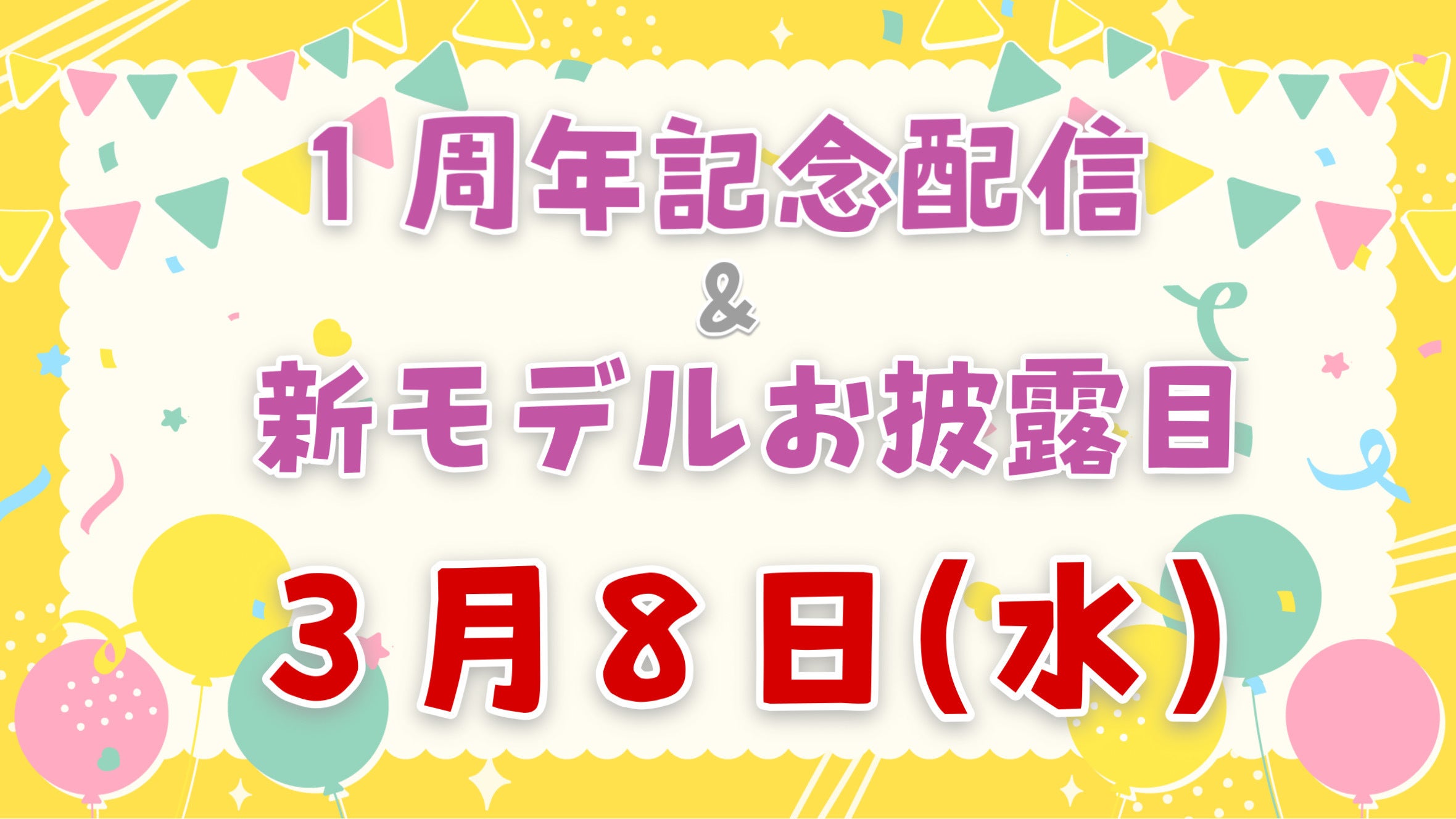3月8日(水) 1周年記念配信&新モデルお披露目!