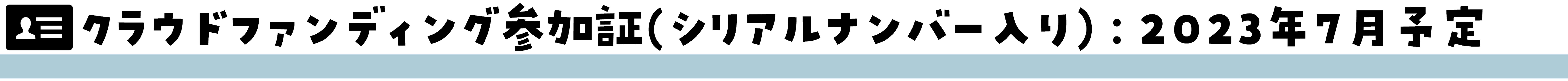 クラウドファンディングに参加してくださった証をプラスチックカード(ナンバー付き)でお送りいたします。