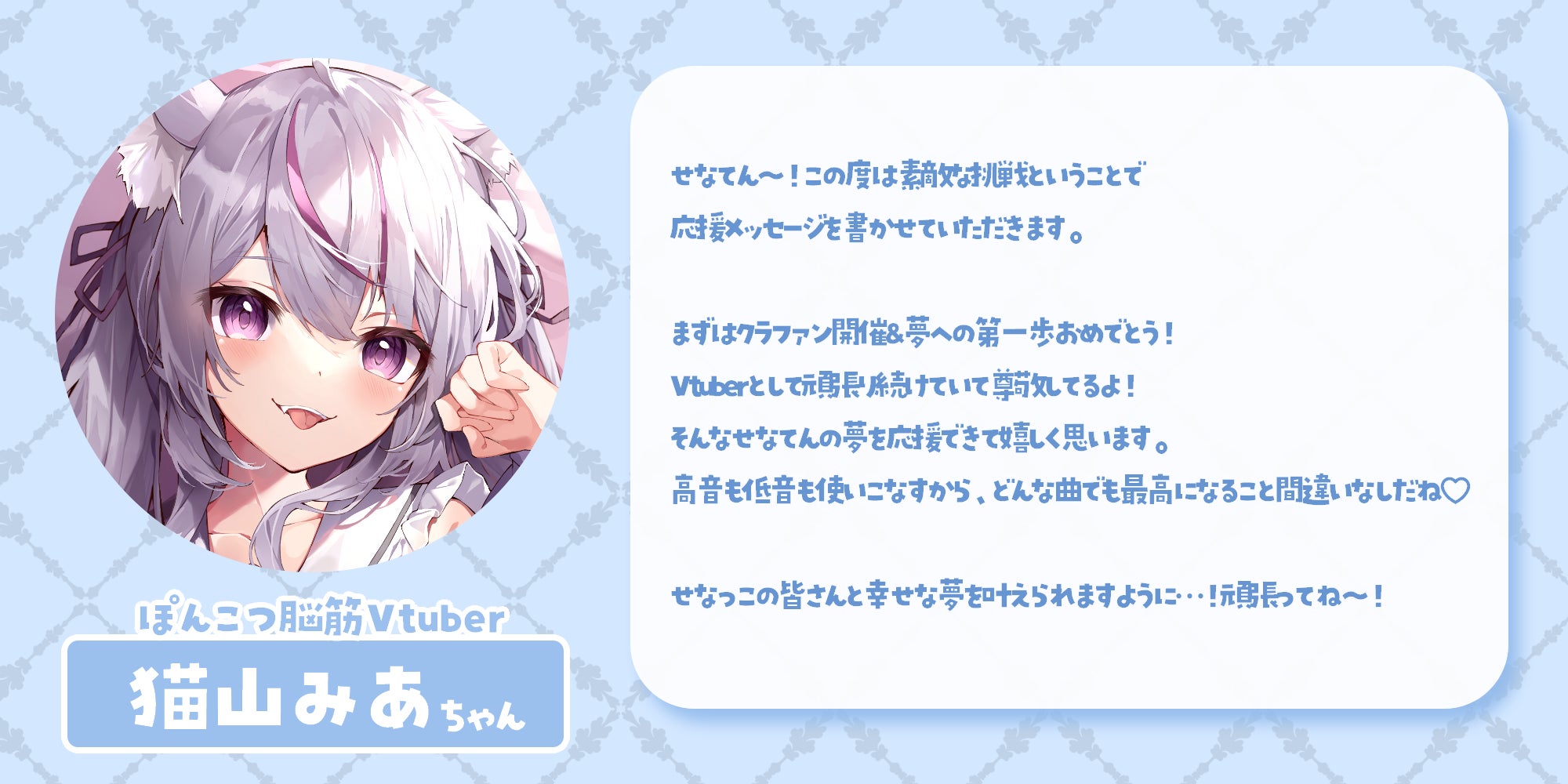 1周年では、日頃の感謝を込めて新衣装の発表を予定していますが、せなが既に用意しているものの他に「みんなと一緒に夢を叶える」という最高の思い出も作りたいと考えています。