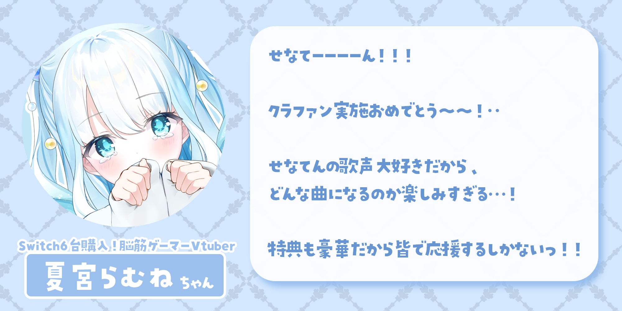 せな自身がせなっこのみんなの「明日を生きる糧」になれるように、今後もずっと配信活動を頑張りたいし続けていきたいし、応援していただいた分全力でみんなにお返しする気持ちでいるので!何卒応援のほどよろしくお願いいたします!!!