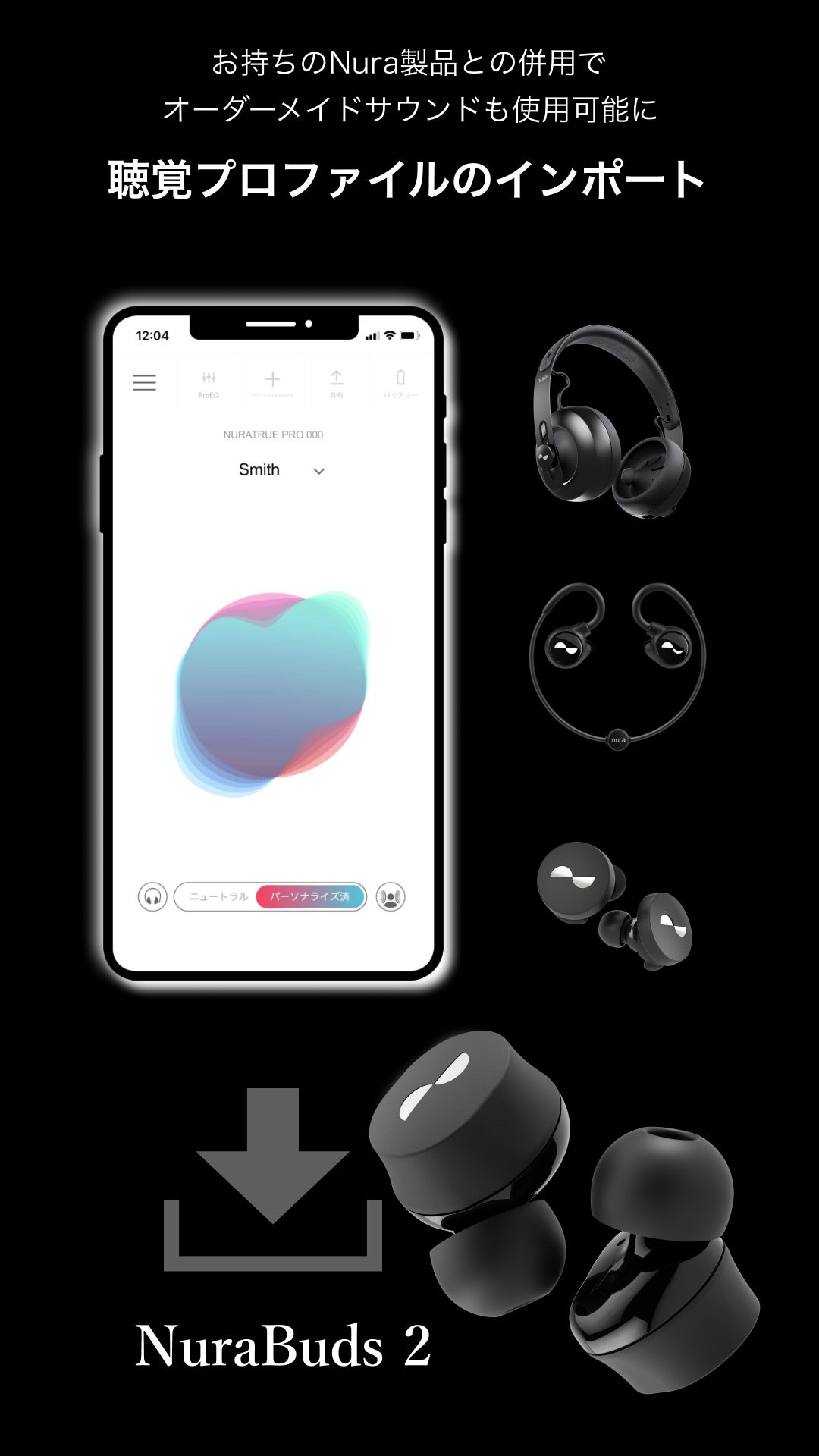 また、NuraLoop、NuraTrue、Nuraphone、NuraTrue Pro等ですでにプロファイルをお持ちの方は、NuraBudsでも自分専用のプロファイルを利用できます。