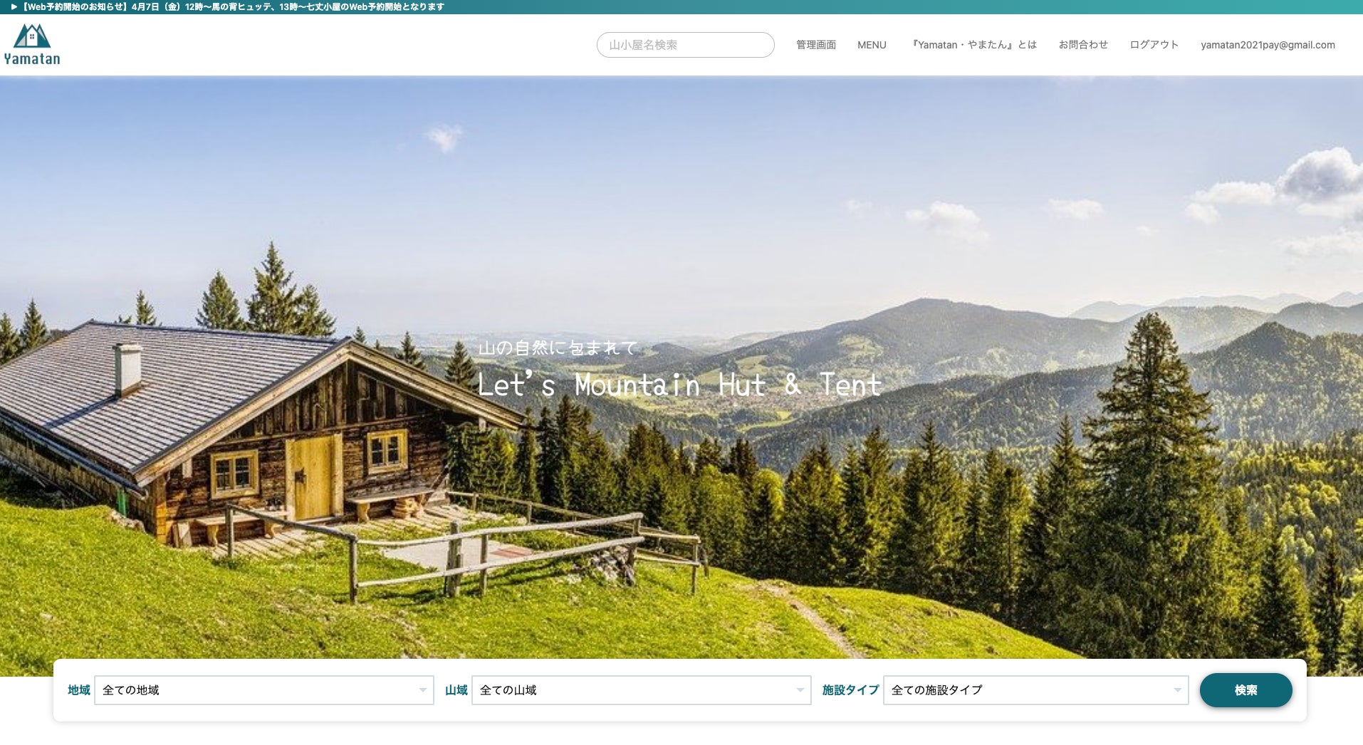 引き続き、 山小屋の宿泊予約サイト『Yamatan・やまたん』をよろしくお願い致します!