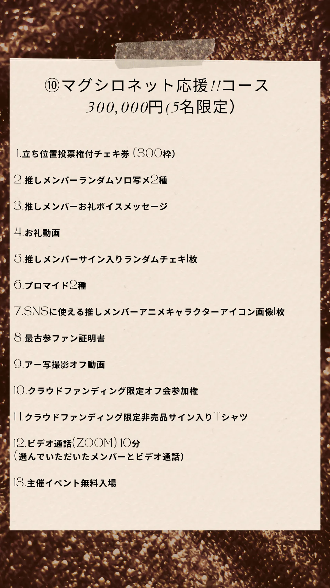 ⑩マグシロネット応援!!コース 300,000円(5名限定)