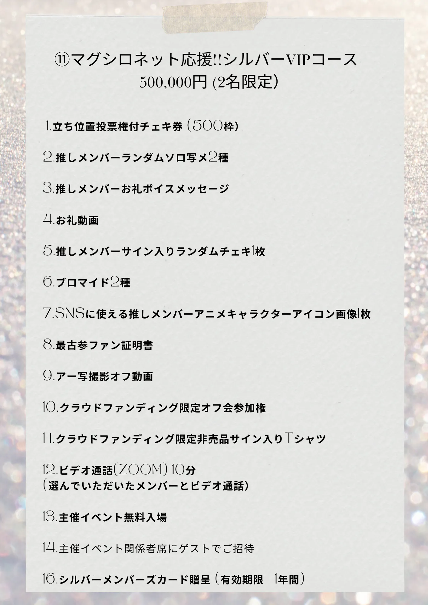 ⑪マグシロネット応援!!シルバーVIPコース 500,000円 (2名限定)