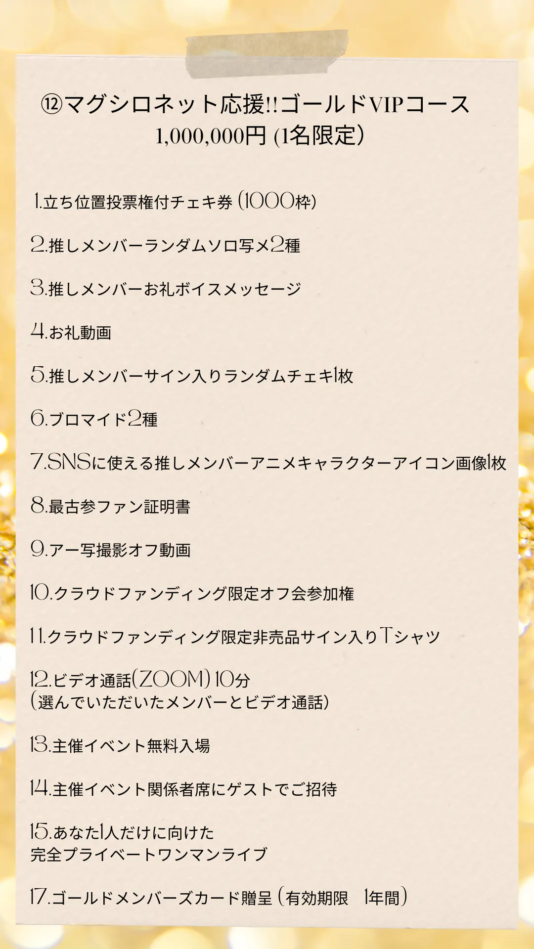 ⑫マグシロネット応援!!ゴールドVIPコース 1,000,000円 (1名限定)