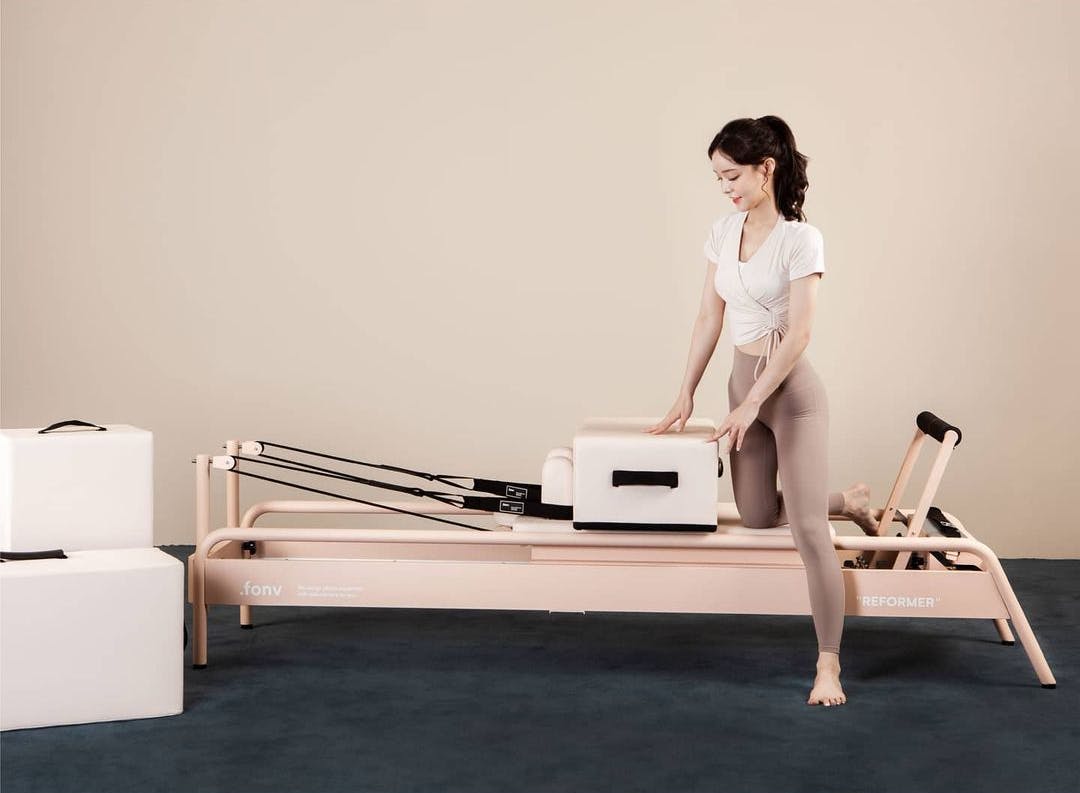 現在では、「体を"Reform"する」という意味から名付けられたリフォーマーと言われるピラティス専用のマシンを使用することで、