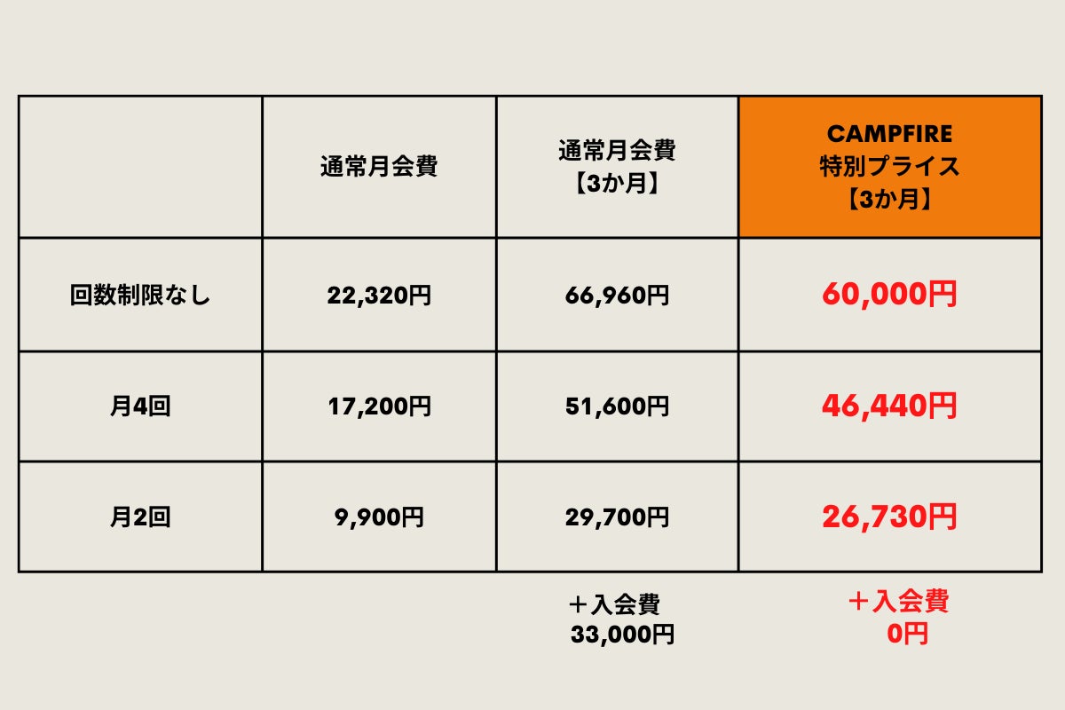 3つのコース3か月間の施設利用料を10%OFF・入会費なしでご提供いたします。