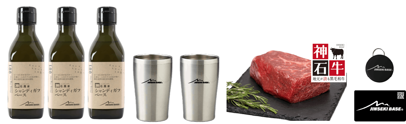 E) JINSEKI BASE フルセット+神石牛サーロインステーキ約500g相当(250gX2枚)
