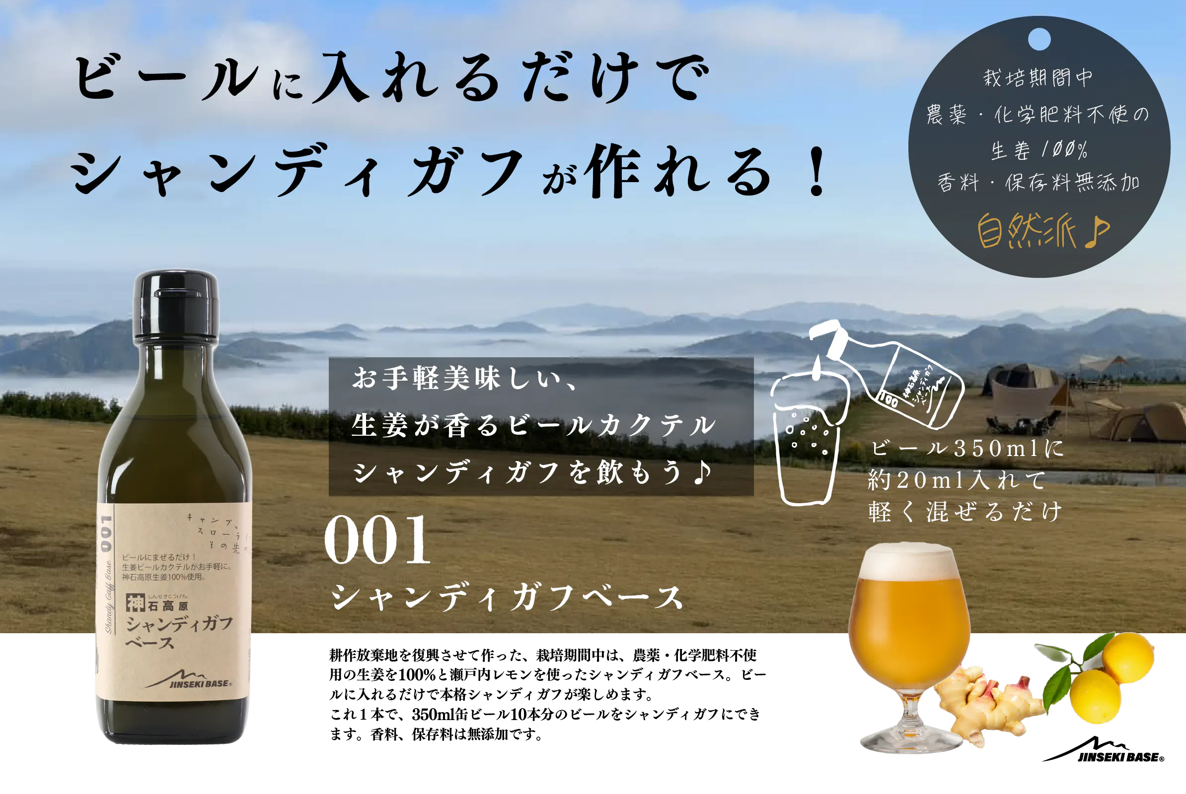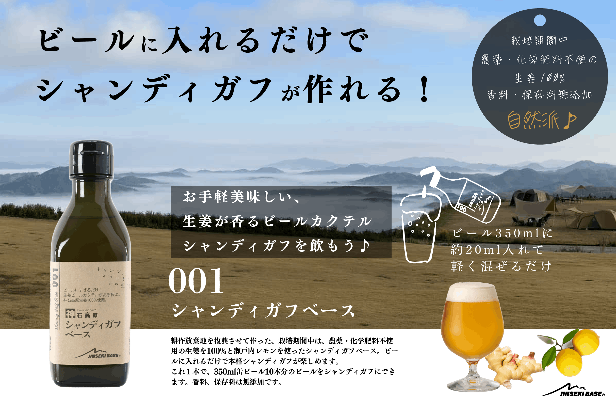 C) 天空のキャンプ場で神石高原シャンディガフを飲めるセット (ソロキャン向け、犬同伴可能)