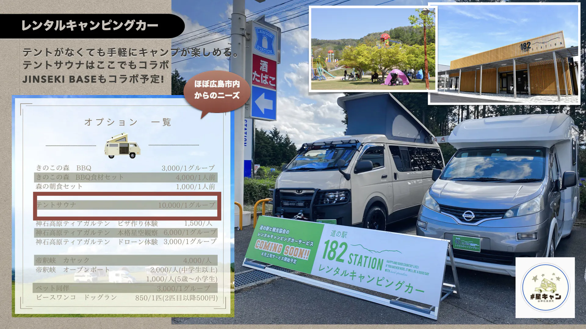G) JINSEKI BASE フルセット+レンタルキャンピングカー ¥50,000 <税込、送料込み>