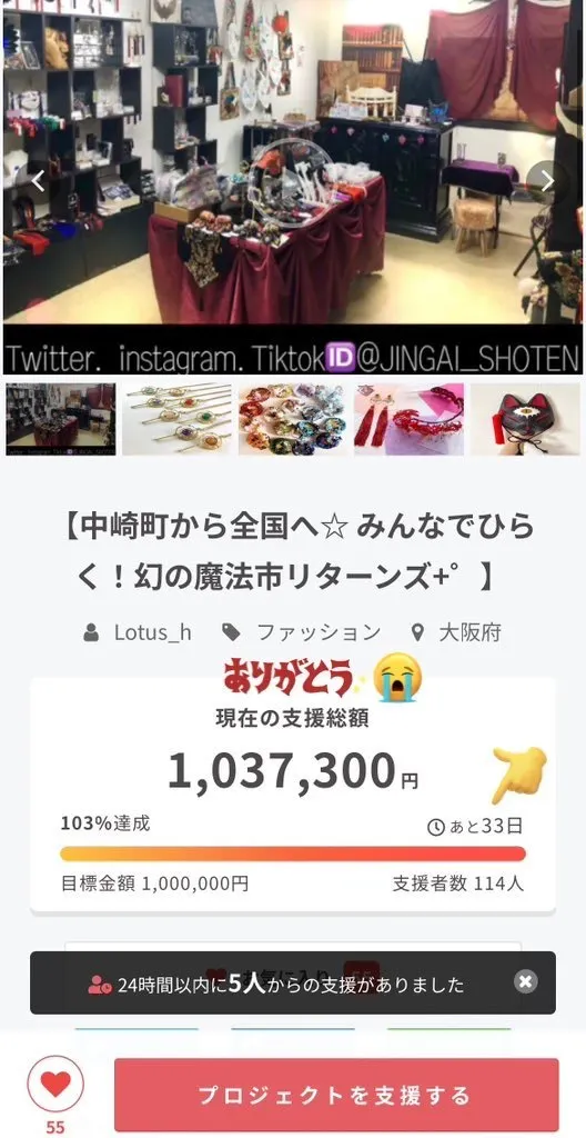 リターンの追加を続々と増やして頂いていて
