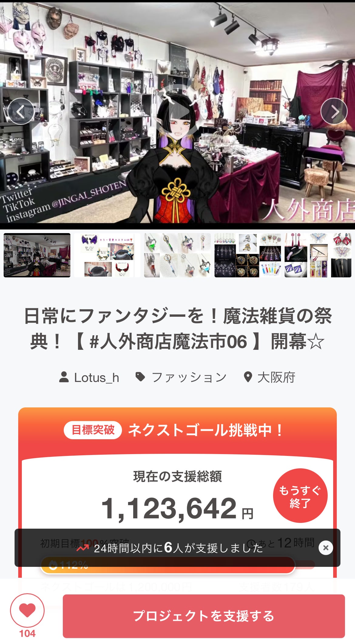 期間限定!アイテム数【500点規模】☆6月30日まで(23:59 End!)【人外商店魔法市07】大型通販受注祭 開催中♪.◦【 #人外商店魔法市07 in #CAMPFIRE 】https://camp-fire.jp/projects/931512/viewゴシック、和風、魔法雑貨、推し活カスタム。サブカル界に通ずるクリエイター陣でお届けする半年に一度の大型通販イベント!\ 約500点のラインナップ /ハンドメイドだからこそできる、“あなただけの一点”に出会える機会。ご用意しました!!そう、これは宝探し。完全オーダーメイド対応コースあり!ご相談のDMも大歓迎☆(推しカラー・文字入れ・概念モチーフOK)他にも!通販受付 〆切後 すぐ届く即納一点モノも多数!!「世界に一つを作る」も「運命の一点を見つける」もどちらも叶います*ー このイベントを続ける理由 ー私たちのお店がある【中崎町】は、今とても注目されているエリア。街が活気づくのは嬉しいこと。でもその分、家賃や運営コストも少しずつ上がっています。それでも、この場所で。この仲間たちと。この世界観を守りながら続けていきたい。だから今回の受注祭は、「今を楽しむイベント」でありながら、お店の未来を育てる挑戦でもあります。継続は力なり。皆のアクションやお買い物で繋がる未来や助かるお店、クリエイター、モチベがあること届いてほしい!!\ 皆で楽しく世界を回そう  /    (ノ・`ω・)ノ☆【要はクラファンって目標設定のある通販なのです。】①ページを見る②好きなコースを選ぶ③支払い方法を選ぶ数分で完了します。“応援”と“お買い物”が一緒になった感覚です。普段の推し活やお買い物もそうですよね♪- 最後に -この受注祭は、クリエイター達の本気と、お客様への感謝でできています。もし少しでもときめいたら!✔ 支援✔ いいね✔ リポストどれも大きな力になります。この街で、このお店を、これからも一緒に育ててもらえたら嬉しいです。\  通販会場へ行こう!/【 #人外商店魔法市07 in #CAMPFIRE 】https://camp-fire.jp/projects/931512/view最後まで アイテム追加あります。ログイン+ページのお気に入りボタンを押して通知を取りながら応援してください!!通販や 記事、宣伝ポストの拡散 シェアなど お力添えを何卒♪宜しくお願い致します!!