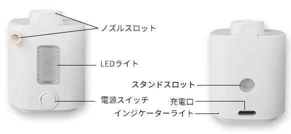 また、専用収納バッグが付いており、ポータブルに持ち運びどこでも空気入れ/抜き・照明・扇風機の機能を活用できます。