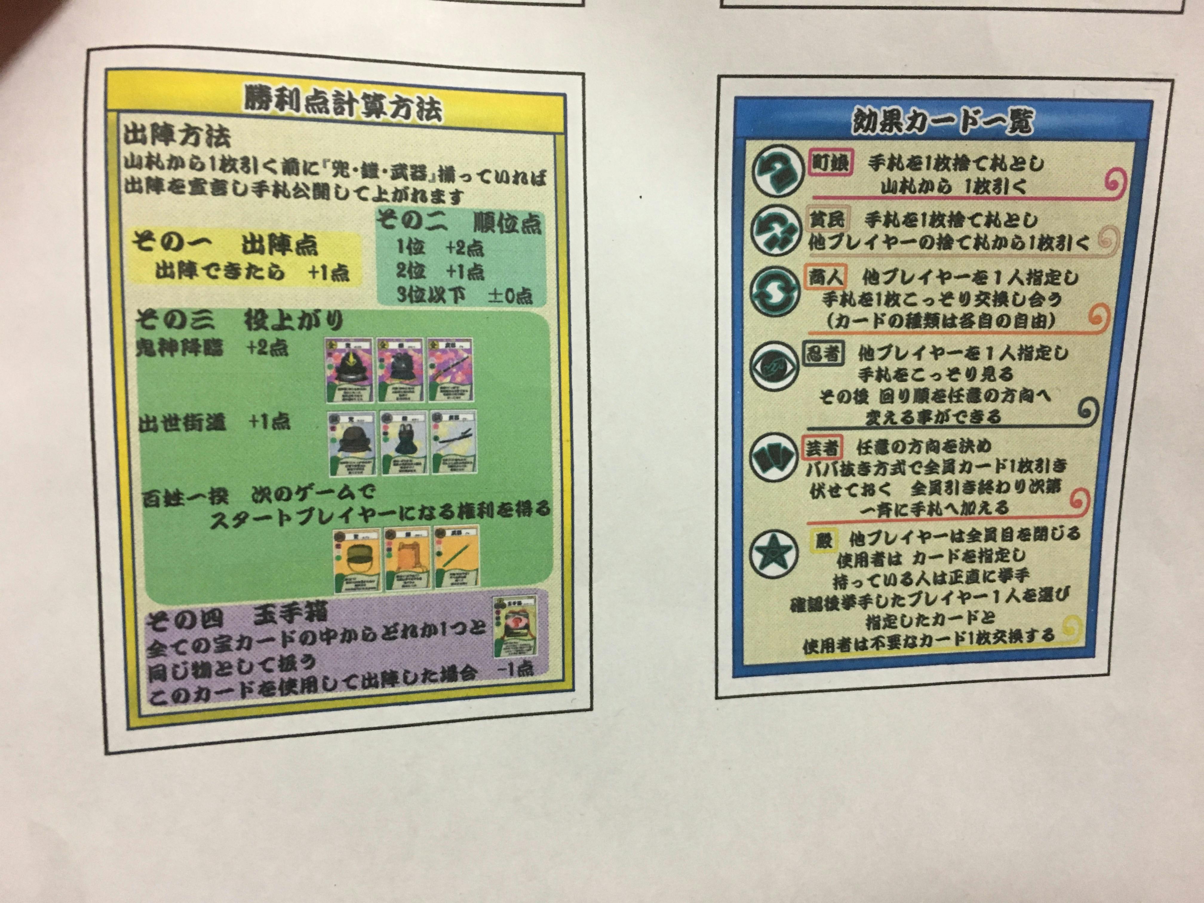 効果カード一覧とゲームの流れや役上がりを書いてあります!!
