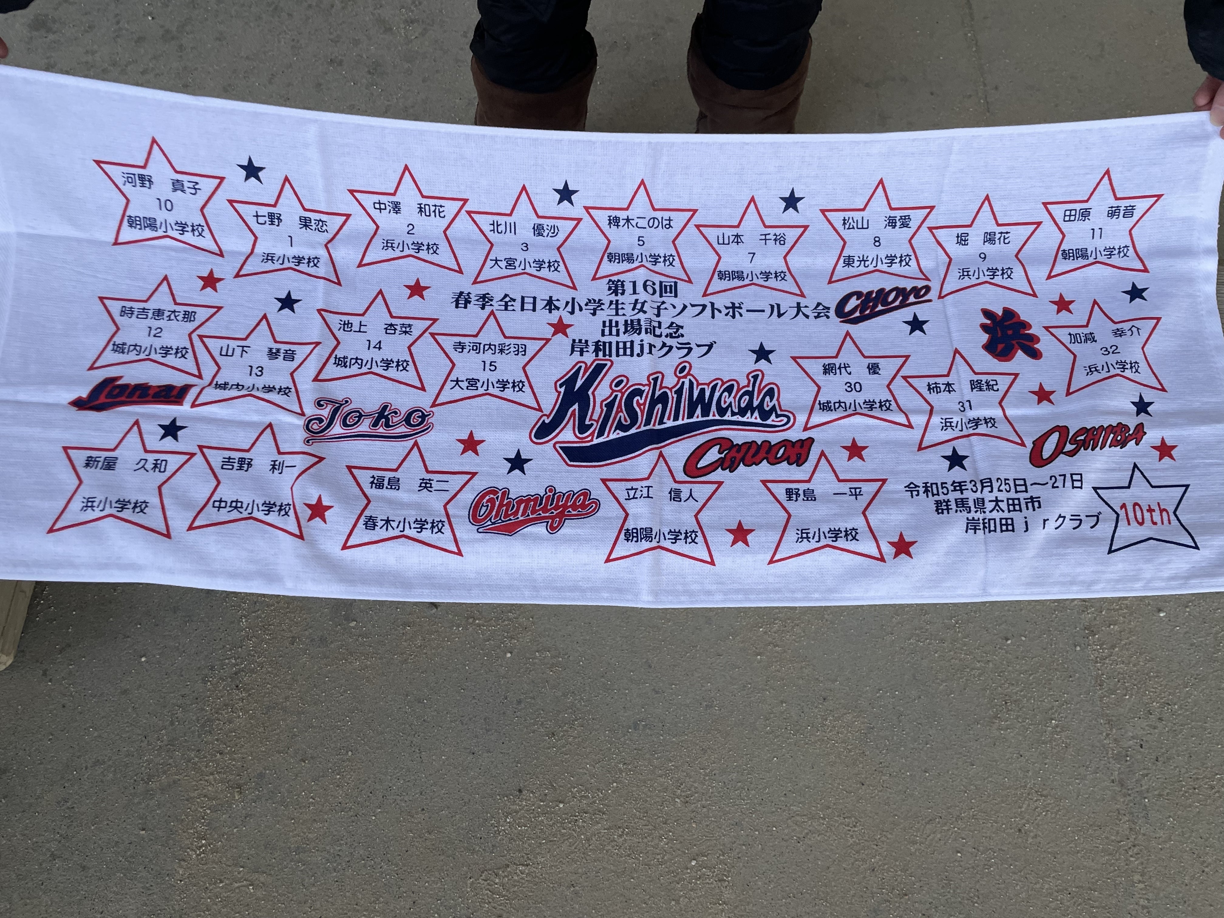 本日、第16回春季全日本小学生女子ソフトボール大会の記念タオルが出来上がりました。
