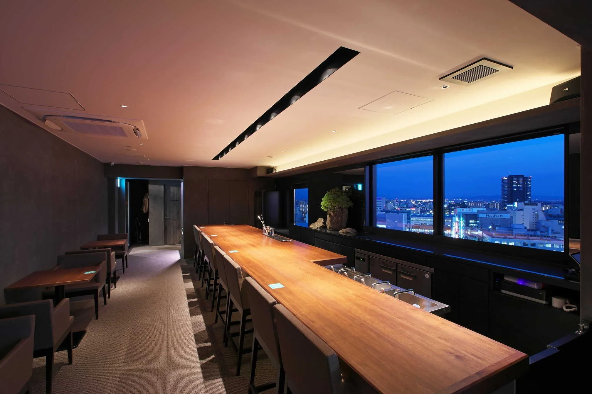 ホテル最上階ラウンジ「Breakthrough」も運営。車列や新幹線を眼下に乾杯
