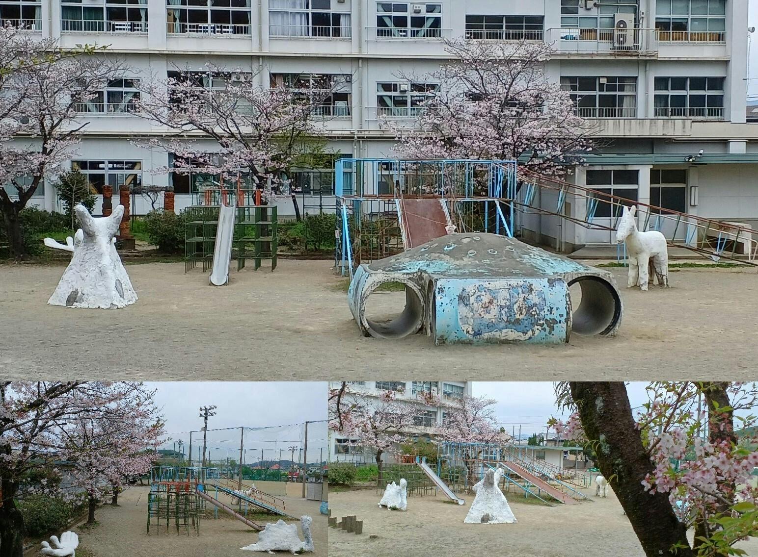 春休みで子どもたちの姿がなく、少し寂しそうな遊具です。