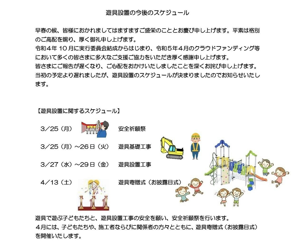 4月13日には遊具寄贈式を行う予定です。