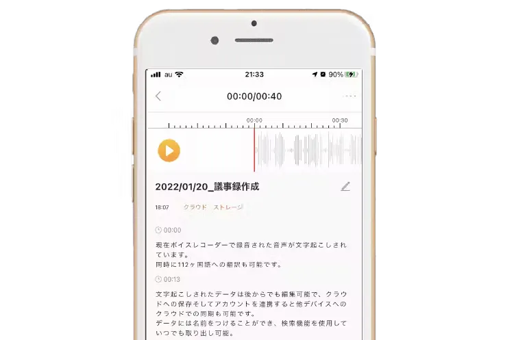 録音中のリアルタイムでも、録音しておいた音声データを後からでもアプリを介して文字起こしは可能、会議が終了した後の議事録作成もこれで大幅に時短できます。