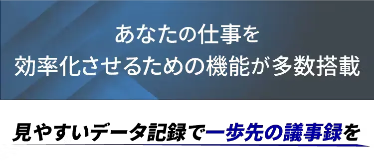AIが記録時間ごとに音声のデータを認識。より見やすい議事録作成をサポートします。