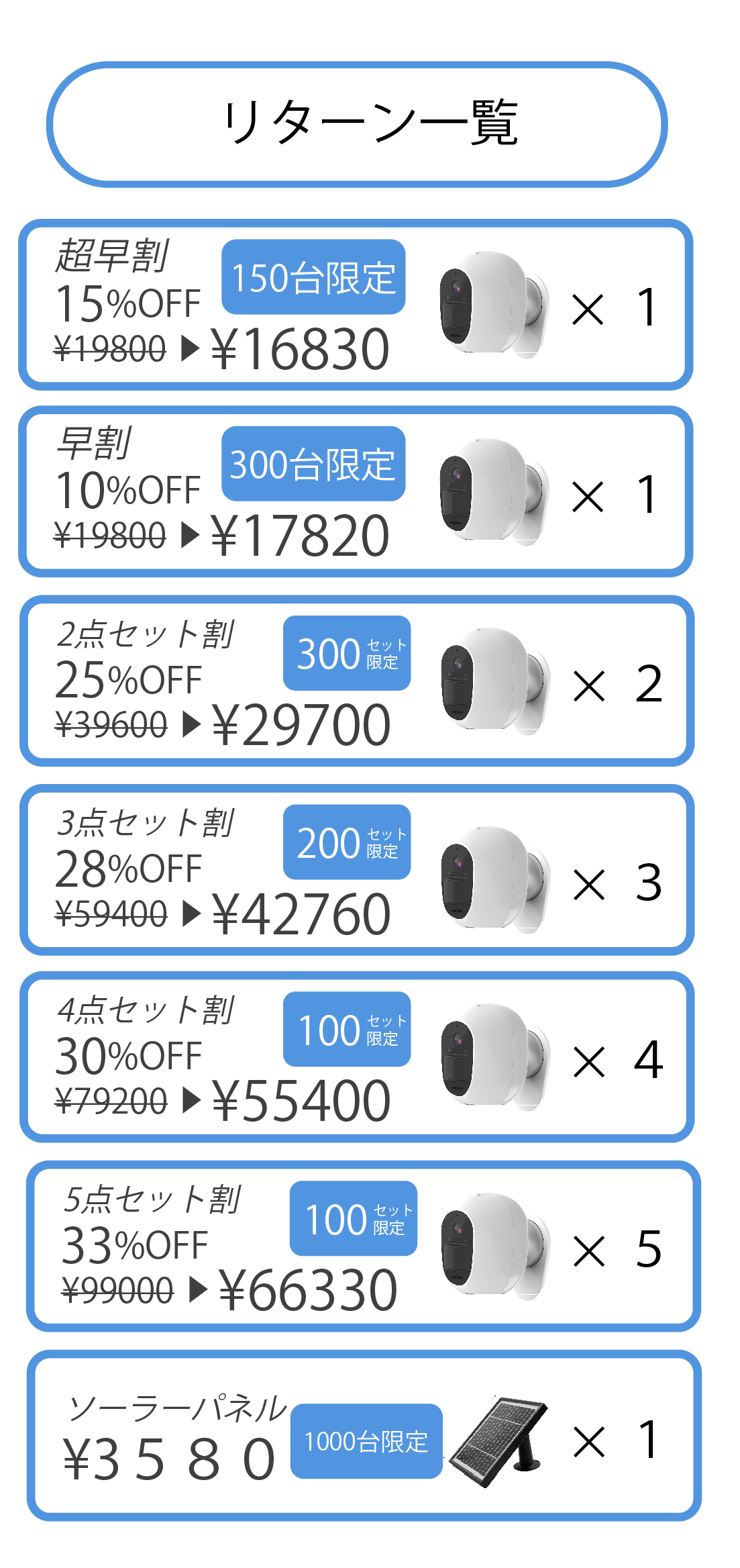 日々セキュリティの重要性を問われる中で、市場にあるセキュリティカメラはどれも設置コストが非常に高く、セキュリティカメラを家に設置するハードルが高くありました。その中でもっと簡単に、手軽に私たちの中に安心、安全なセキュリティ対策があってもいいのではないかと思い、VESAFEの代理店として日本にこのカメラを販売したいと思いました。前回のプロジェクトでは600万円以上の応援購入をいただき今回は第2弾としてさらに防水機能・ソーラーパネルな機能を更にアップデートしての販売となりま。これからも消費者の皆様の生活が便利になる製品を紹介していきたいと思っております。よろしくお願いいたします