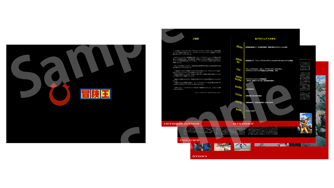 本プロジェクトは、制作会社「ピー・プロダクション」(以下「ピープロ」)が手掛けた特撮テレビ番組のうち、『快傑ライオン丸』『風雲ライオン丸』『鉄人タイガーセブン』『電人ザボーガー』以上4作品のスチール写真のポジフィルム約2000枚分をデジタル化し、アーカイヴとして後世に残すことを目的としています。