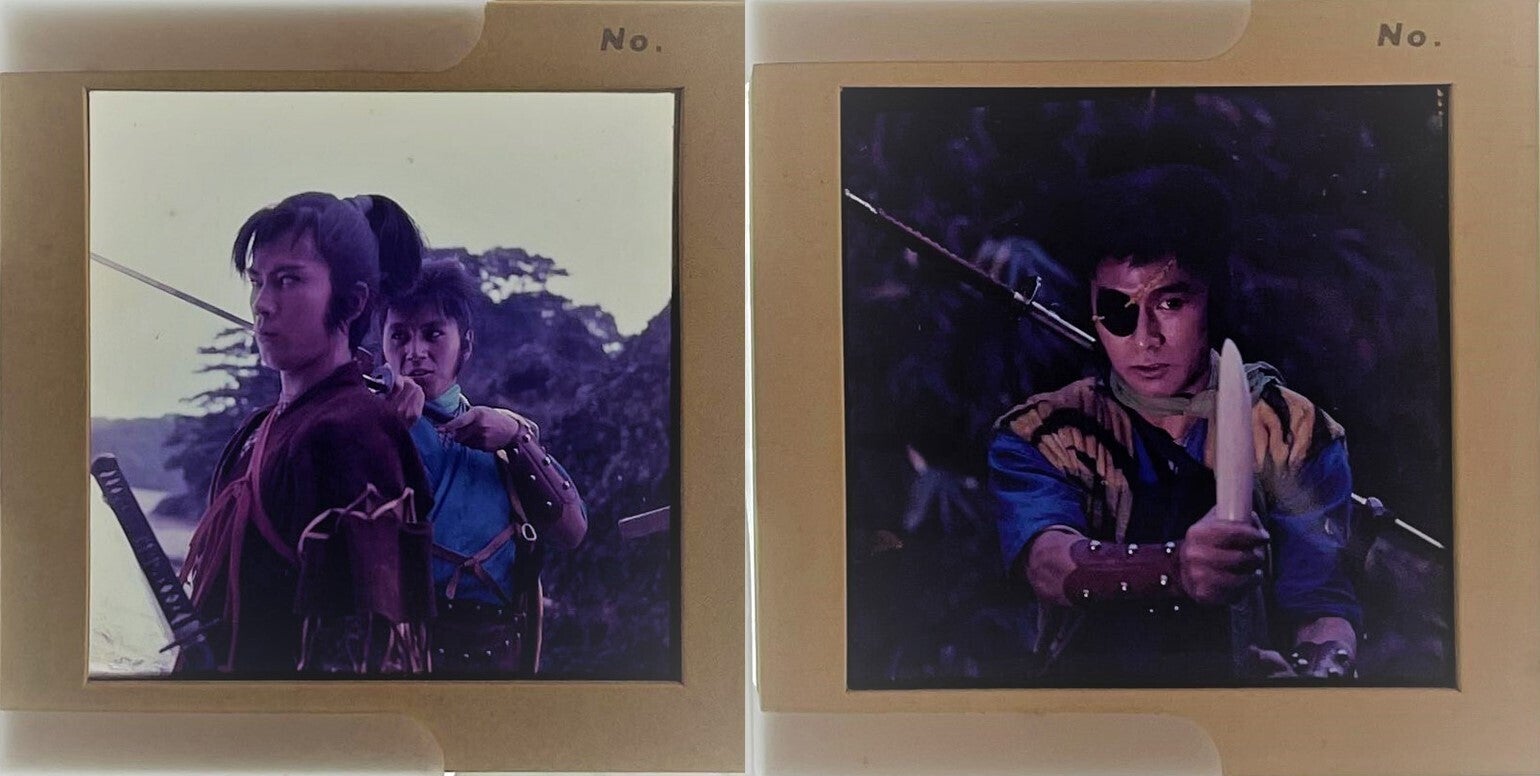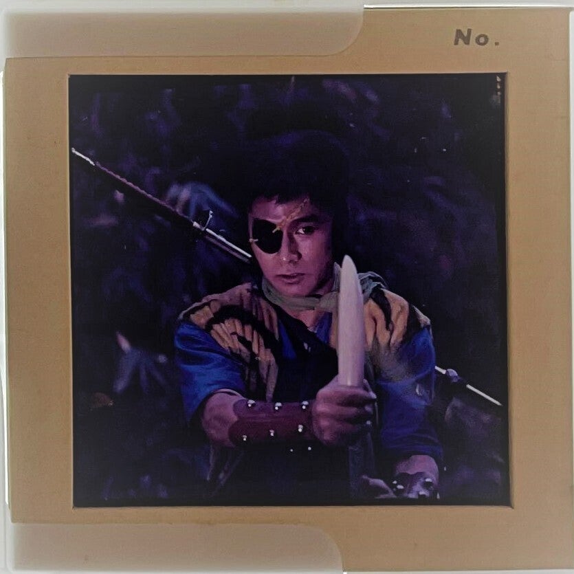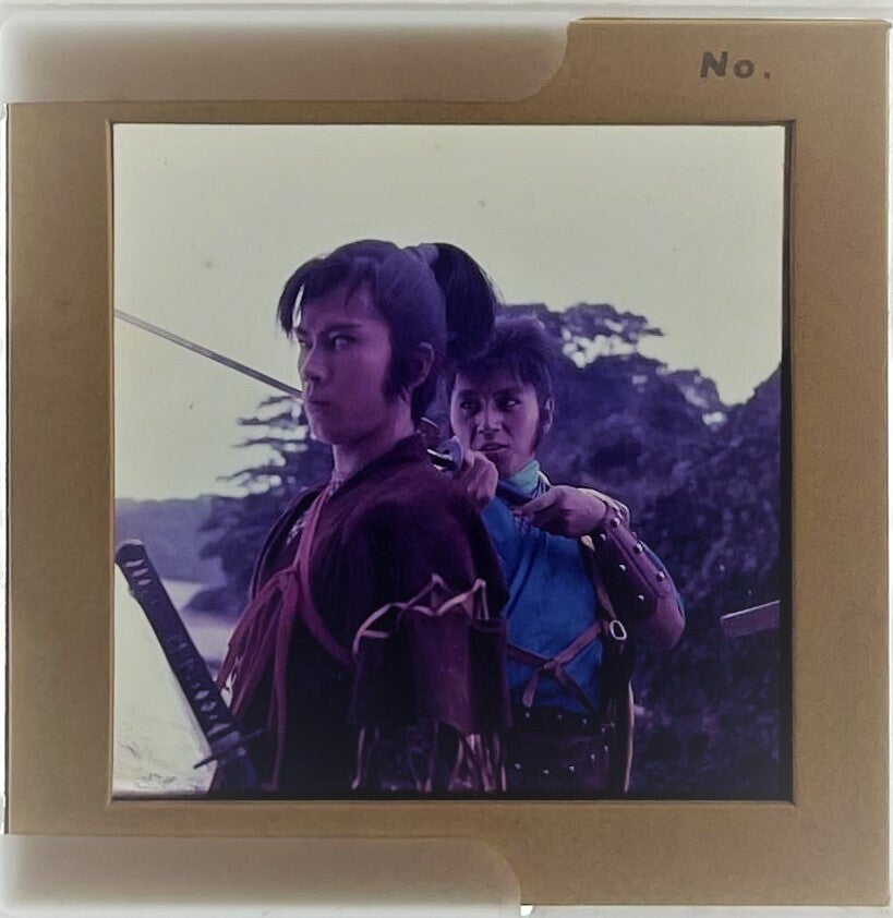 前回タイガージョーについて紹介しましたが、今回はその変身前ということで、虎錠之介を写したフィルムを2枚、紹介いたします。1枚目は第27話「大魔王ゴースン怒る!」の錠之介初登場のシーンと思われる写真。そして2枚目は第45話「抜け忍けもの道 怪人ハンザキ」終盤のシーンで撮影されたと思われる写真です。