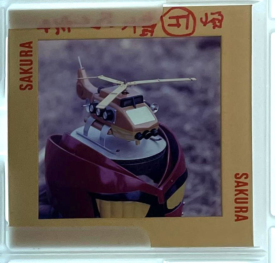 今回は『電人ザボーガー』のヘリキャットやマウスカーといったミニチュアの写真も何点かありましたが、この2つはヒルマモデルクラフトというミニチュア専門の会社が当時作っていました。そういったミニチュアの材質とか、「こうやって作っていたんだ」ということを写真から鮮明に解析することができる。僕は現場でそのミニチュアも見ていますが、このポジが無くなったら後世の人はもう見ることも知ることもできなくなっちゃう。