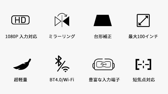 最大入力1080P、100インチ大画面やHDMI接続に対応し、まるで映画館のような大画面かつ高画質で迫力のある映像を、自宅で手軽に楽しむことができます。