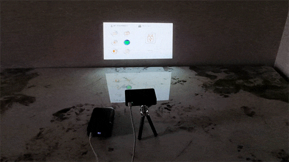 A:凹凸がある場所、色が付いた壁などではきれいに投影できません。平らな白い壁やプロジェクターシートで使用できます。