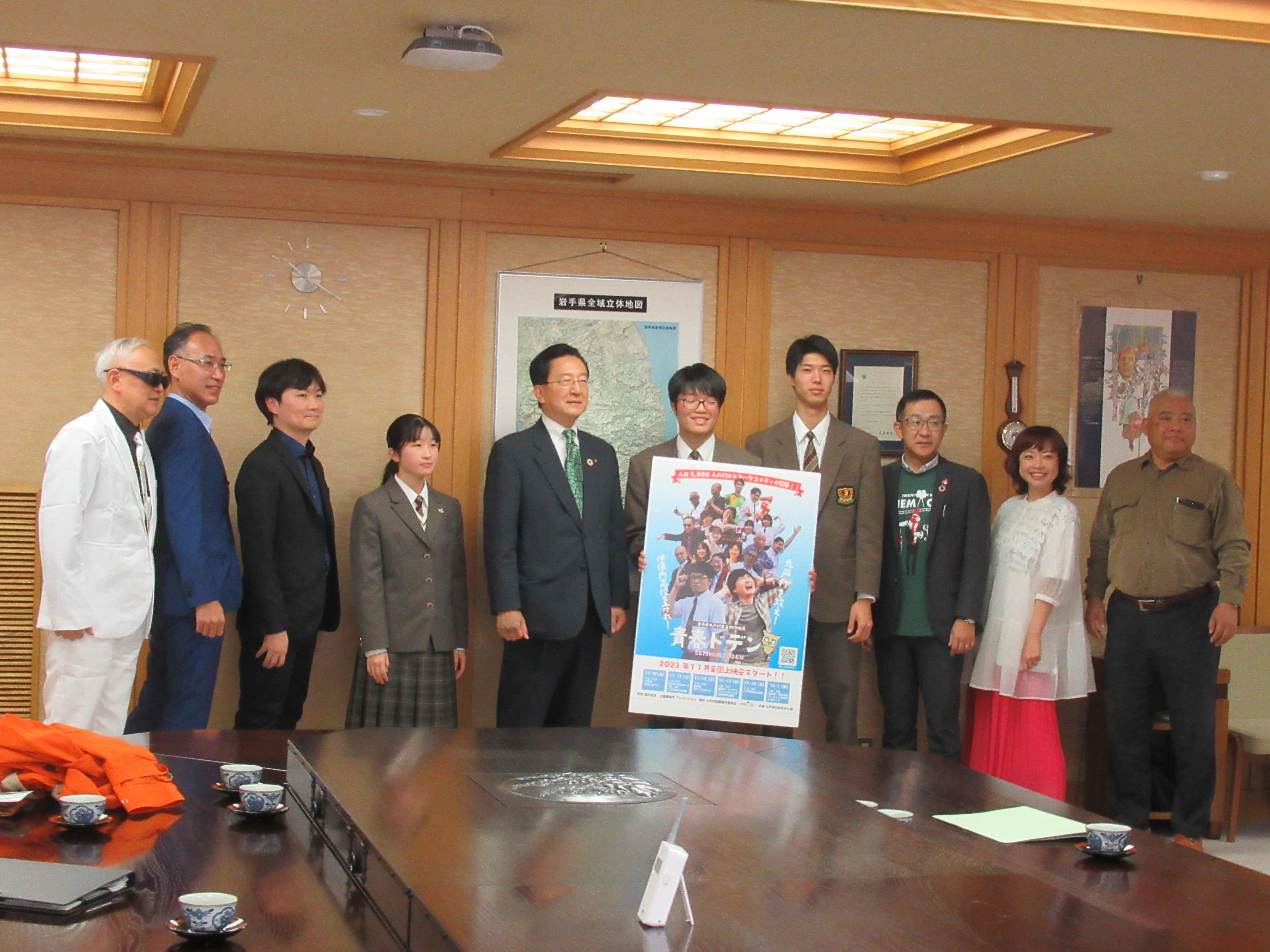 2023/11/09 14:05明日10日から始まる上映会について、優待券持参の方は、特に予約なしでも十分入場可能な見込みですが、12日(日)13:30開演の盛岡おでってホールにつきましては、前売券またはHP予約がある程度増えております。会場も比較的小さいホールですので、12日鑑賞希望の方は、事前予約をお薦めします。「青春ドデン」で検索した専用ホームページから予約可能です。よろしくお願いします。なお、12日の上映会終了後の舞台挨拶には、特別出演のIAT仮屋未来アナ、FM岩手阿部沙織アナ、キングオブチキンも登壇予定です。 もっと見る11月1日(水)岩手県知事に映画完成報告