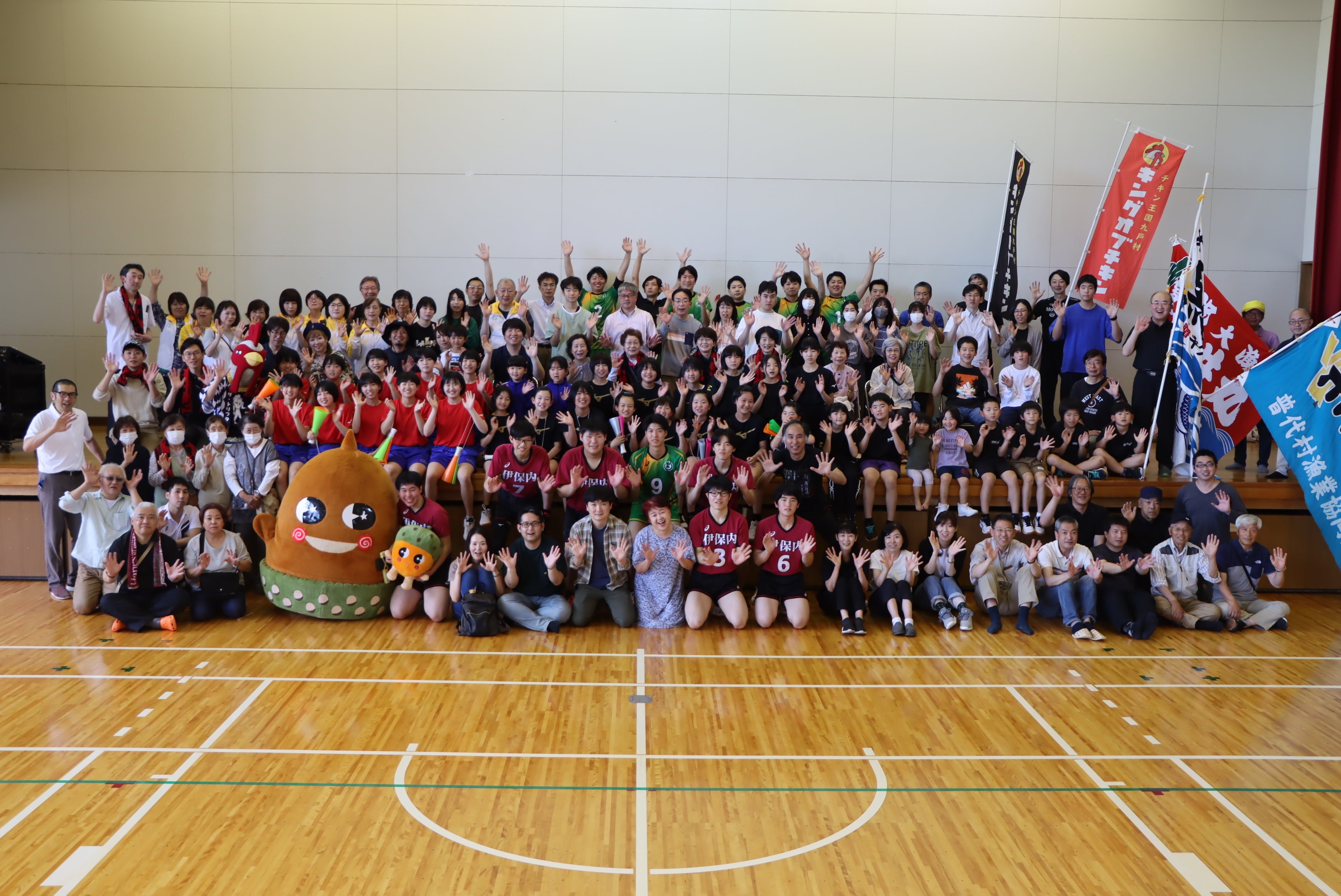 その中でも、6月17日(土)の九戸村体育センターには、総勢130名の出演者が大集合し、伊保内高校バレー部と強豪・大江戸高校の試合と応援風景を撮影することができました。