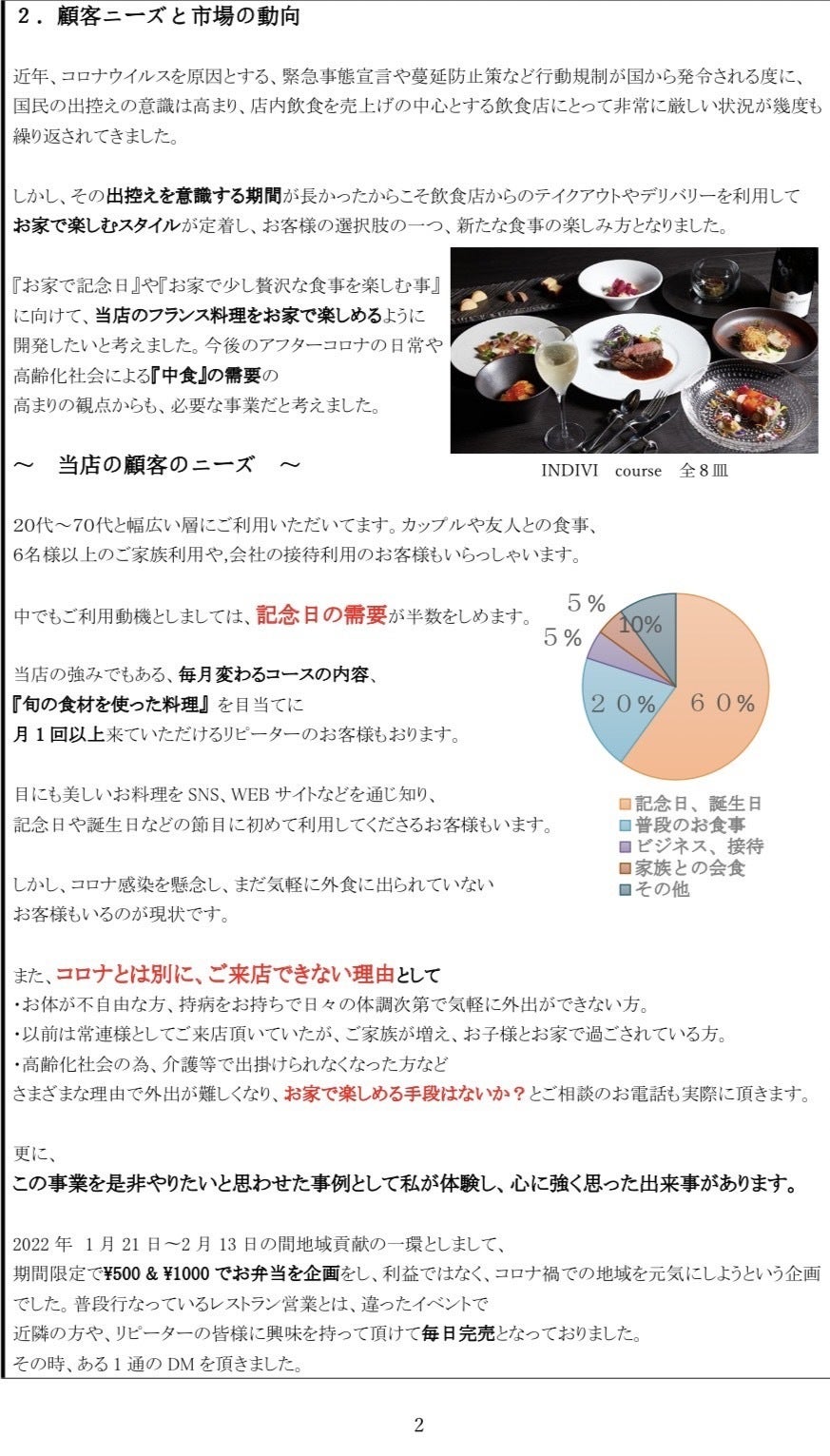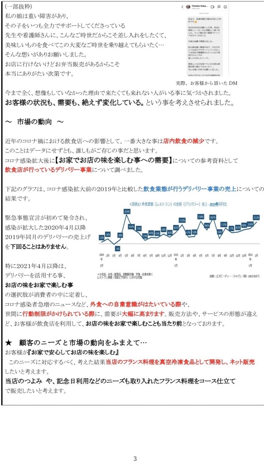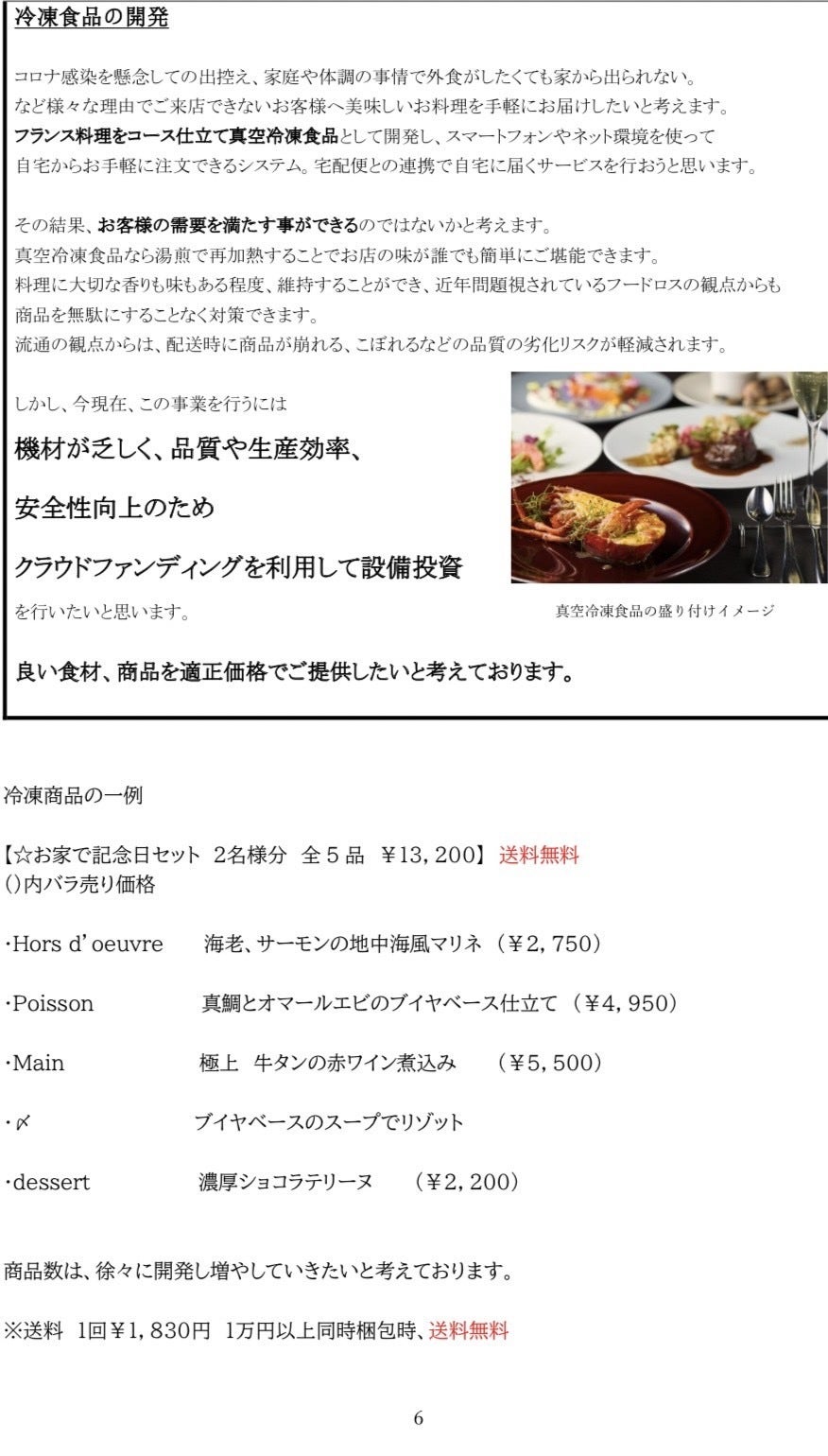 お家で我々のお食事をご提案できる方法があれば、今後もずっと繋がっていける。