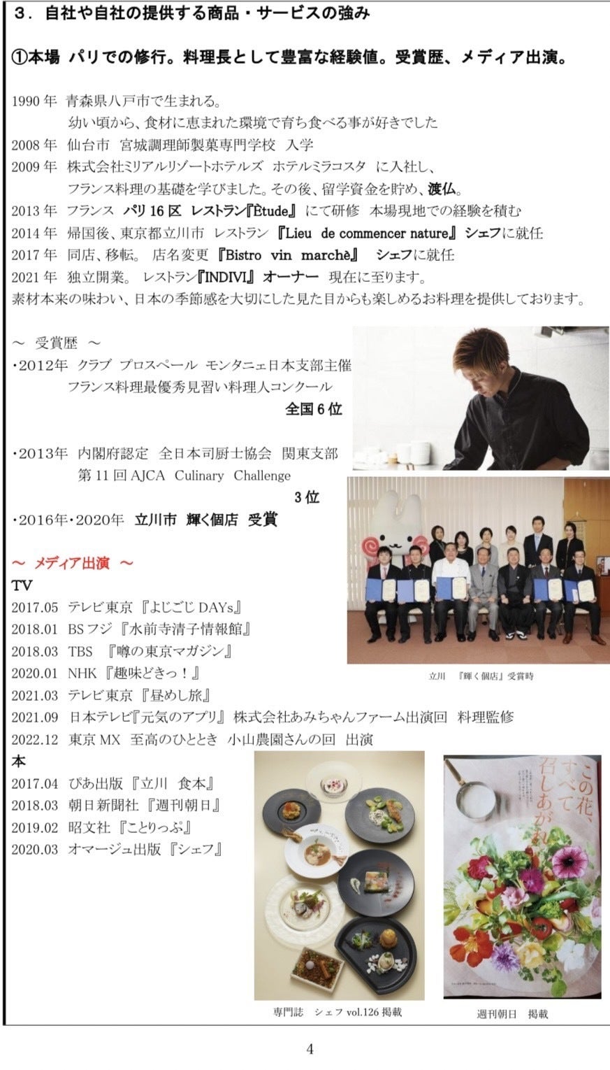私は独立以前に、東京都立川市で8年ほどシェフとして働いておりました。