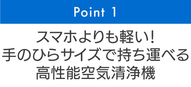またバッグに入るほど小さいので、オフィスでマイ空気清浄機として使ったり、旅行や出張先のホテルの部屋の慣れない臭いを消したりと、様々なシーンでお使いいただけます。