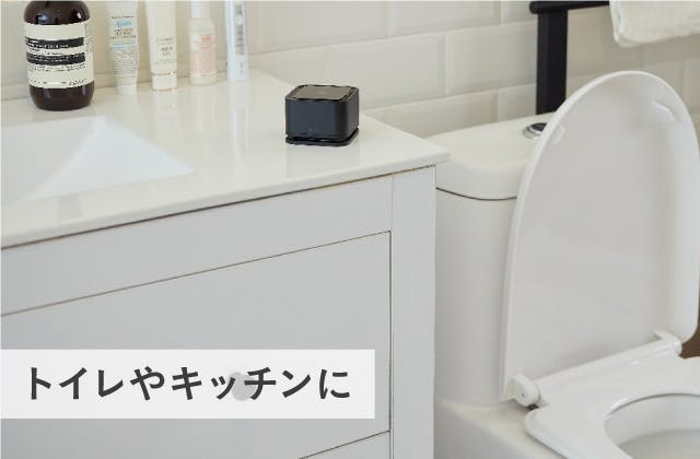リビングやベッドルームはもちろん、トイレやキッチンといった空気洗浄機が設置しにくい場所でも利用が可能(コンセントがない場所ではモバイルバッテリー等の電源が必要となります)。