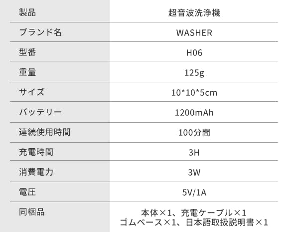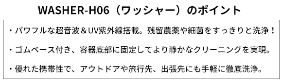 撃波の強力な超音波&UV紫外線ライトにより、普段の手入れでは落としにくい細かな場所の頑固な汚れを簡単に洗浄できる超音波洗浄機「WASHER-H06」。