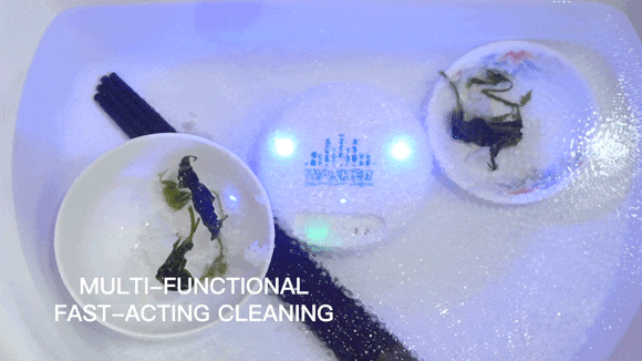 水を貯められる容器に設置するだけで、野菜や果物、海鮮、衣類、メガネなどに付着した細菌、残留農薬、皮脂や油汚れを効果的に除去できます。
