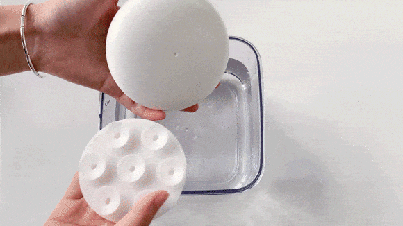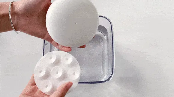 付属の柔らかい衝撃吸収用ゴムベースを洗浄機の底部に取り付けることで、容器にしっかりと吸着でき、超音波振動によるズレを抑えてより静かなクリーニングを実現します。