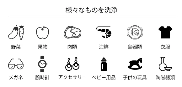 超音波の力で普段の手洗いでは届かない場所も細かく洗浄でき、これ一台で様々なシーンに大活躍!