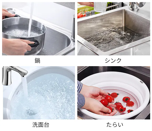 たらい、洗面台やシンクなど、水を貯められる容器さえあれば、どこでも除菌可能です。容器のサイズ・排水のしやすさを気にせず、複数のアイテムをまとめて入れても洗浄できます。