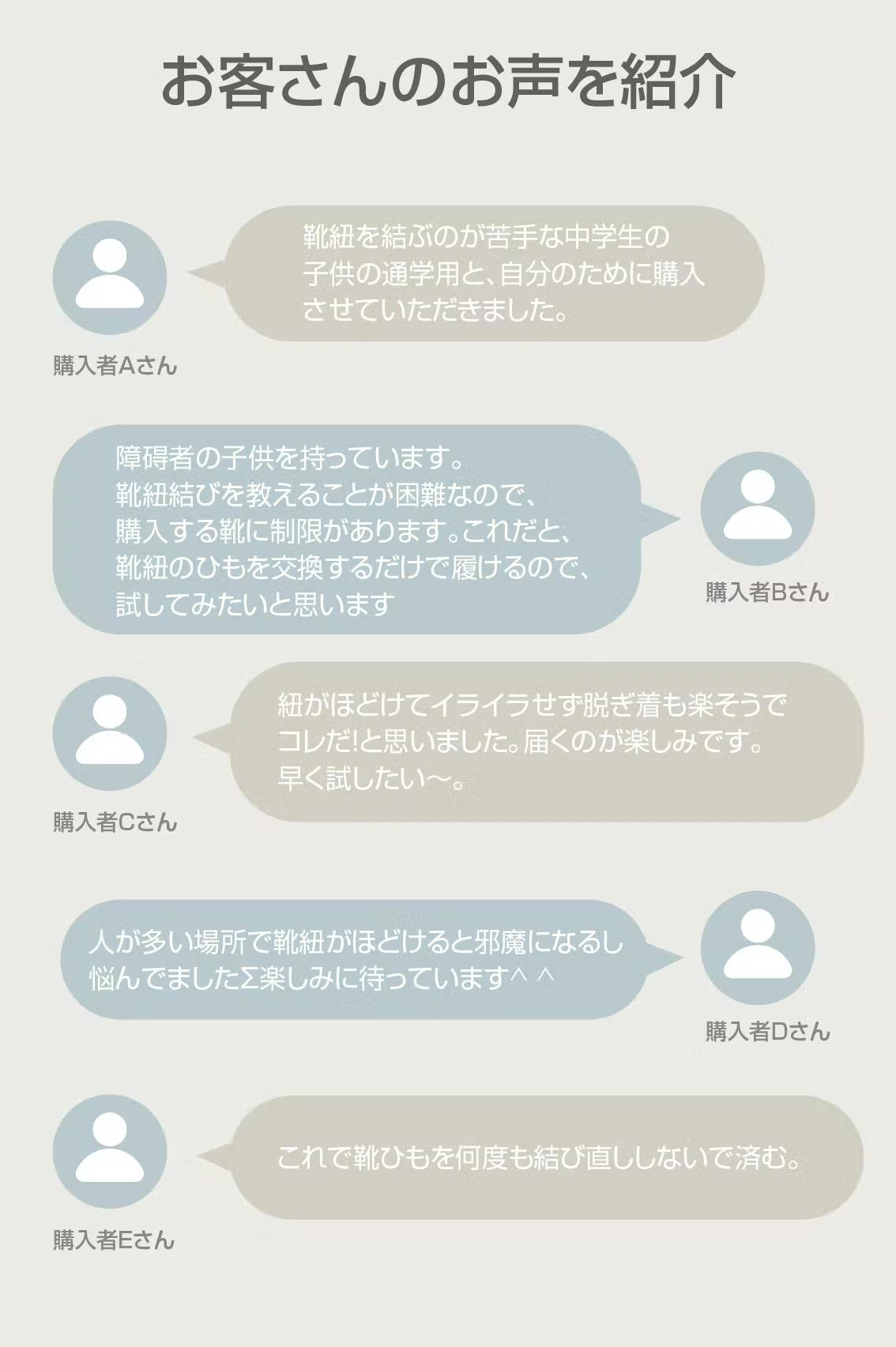 紐を結ぶ必要がないので、小さなお子さんから高齢な方、手が不自由な方、どんな方にでもお使いいただけます!