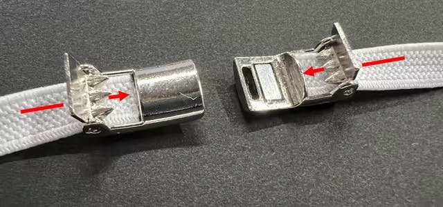 ④最後は左右のバックルを重ね結合して完成です。