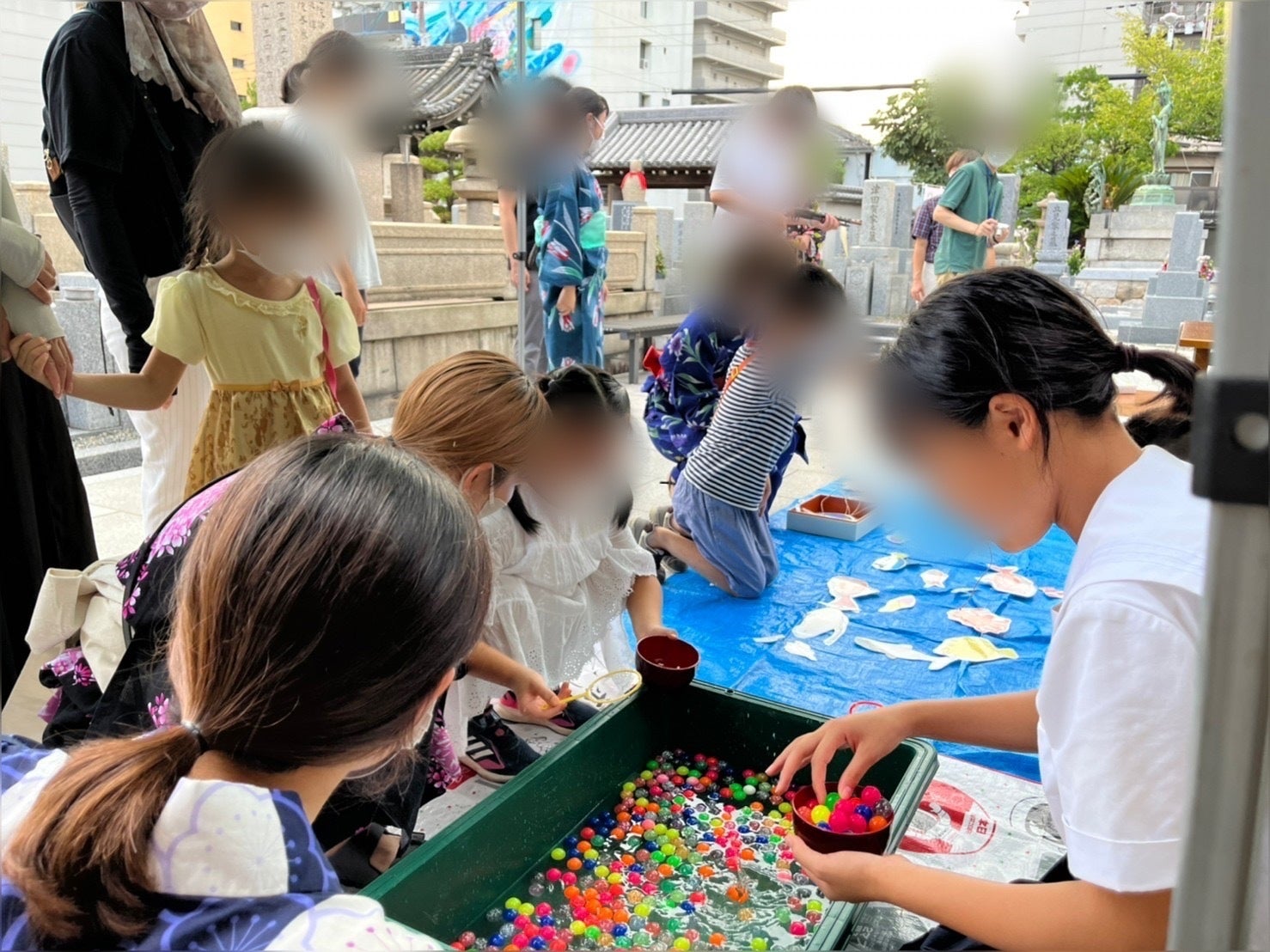 地蔵盆は西照寺をはじめとする地域のお寺や地方自治体と協力し企画しました。地域のお祭りとして行い、文化祭のように子どもたちと一緒に出しものを決めて必要な準備に取り組み、無事成功しました。